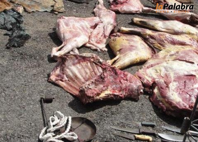 Los sujetos que se movilizaban en bicicletas tenían partes de los animales en mochilas y en bolsas de arpilleras. La policía procedió a la inmediata demora d...