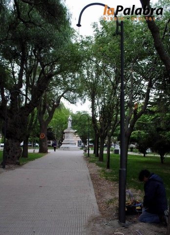 Los trabajos que se realizan consistieron en la colocación de 16 luminarias de 4,50 metros de alto, con artefactos de sodio de 150 wats; para lo cual se debió, prev...