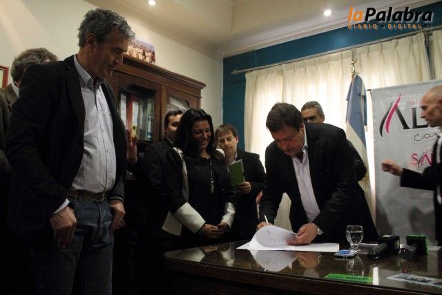 Junto a la intendenta Sabina Costa, el ministro de Obras y Servicios Públicos, Carlos Valeri, y el interventor del IPPV, Alejandro Echarren, el Mandatario Provincial firm&oa...