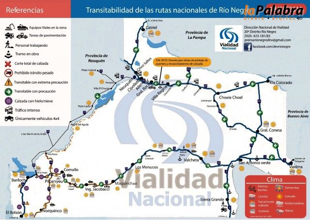 La R.N. Nº40, tramo El Bolsón – San Carlos de Bariloche, se encuentra transitable con extrema precaución por la presencia de sectores con hielo sobre la ca...