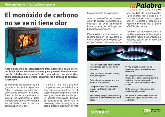 Recomendaciones para evitar intoxicaciones graves con monóxido de carbono