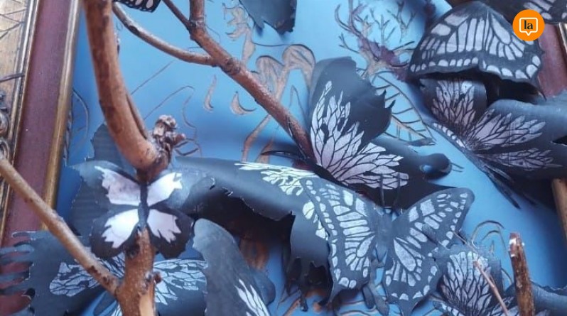 escultura y grabado "Alas de Luz y Sombra" de Valeria Carrasco en la