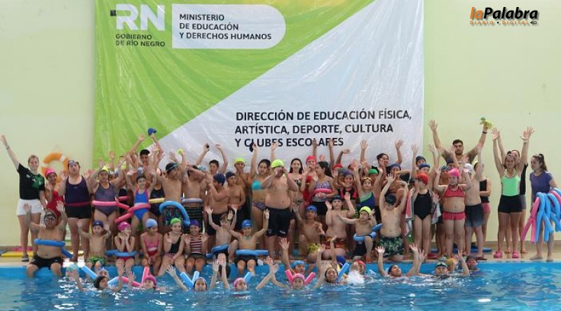 El programa de Natación Escolar reunió a estudiantes de escuelas primarias de Viedma y San Javier, durante el Encuentro Participativo en Educación Física, que se desarrolló en la p...