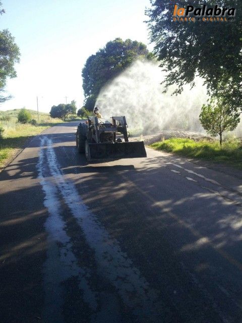 Los trabajos se realizan en calles, baldíos y espacios públicos, y se efectúa de manera terrestre, con un tractor que arrastra la fumigadora de gran porte. Am...