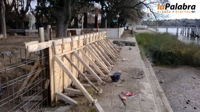 El paredón avanza desde el sector más cercano al muelle de lanchas hacia la calle Belgrano.