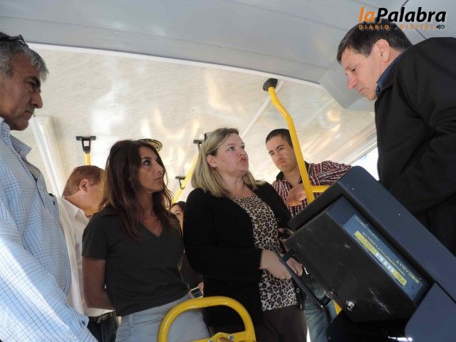 El empresario, Carlos Balogh, titular de la empresa que tiene el servicio de transporte público en la Comarca, presentó en sociedad el nuevo sistema de cargas con tar...