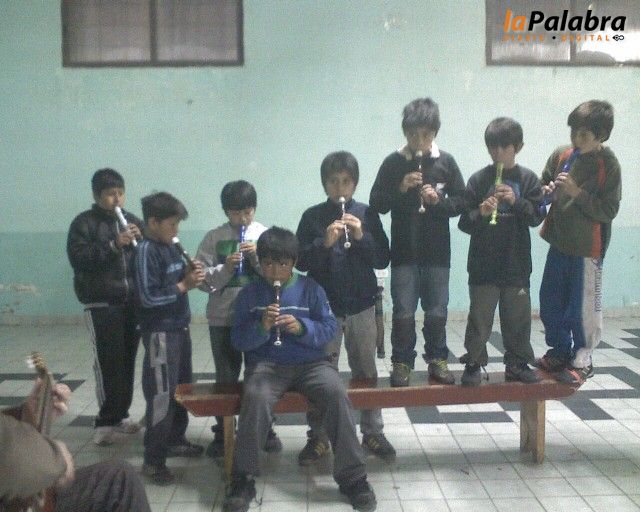 Los niños del taller municipal, a cargo de los profesores Fabián Alverdi y Anyela Cuellar, tocaron la flauta para los otros niños presentes.