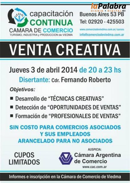 La capacitación, que cuenta con el auspicio de la Cámara Argentina de Comercio (CAC), se realizará entre las 20 y las 23 en el salón de actos y conferen...