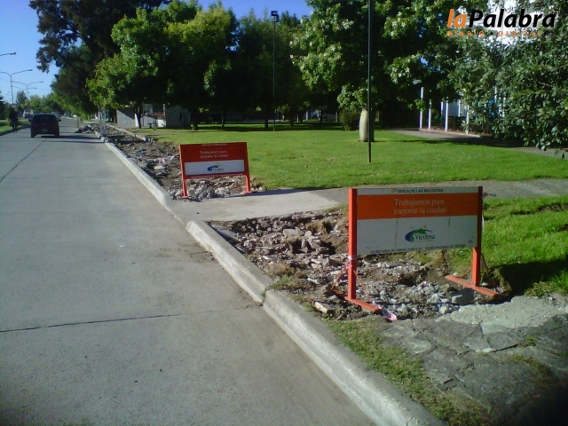 Las labores incluyeron en primer término la remoción de la vereda existente, muy antigua y deteriorada, sobre todo por el crecimiento de los añosos ár...
