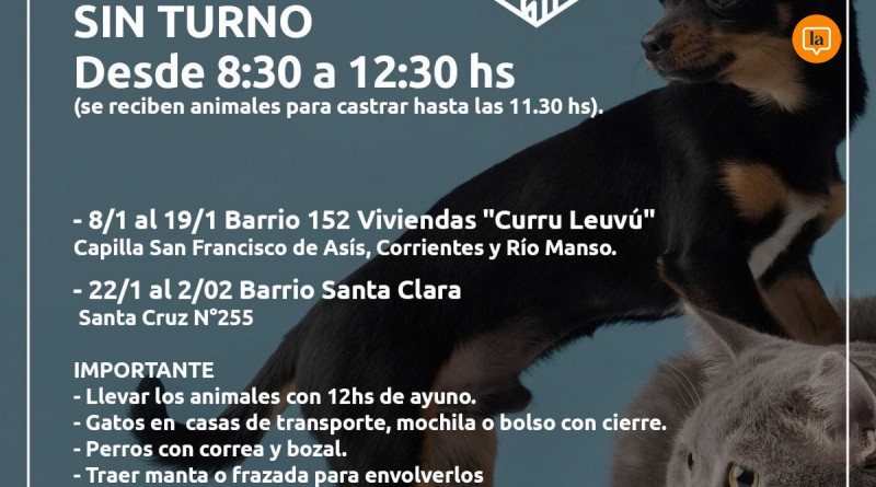 La municipalidad de Viedma informó que se siguen realizando castraciones gratuitas sin turno.Desde 8:30 a 12:30 hs (se reciben animales para castrar hasta las 11.30 hs).Del 8/1 al...