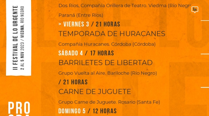 noviembre se llevará a cabo el Festival de Lo Urgente en Viedma. Se trata de la