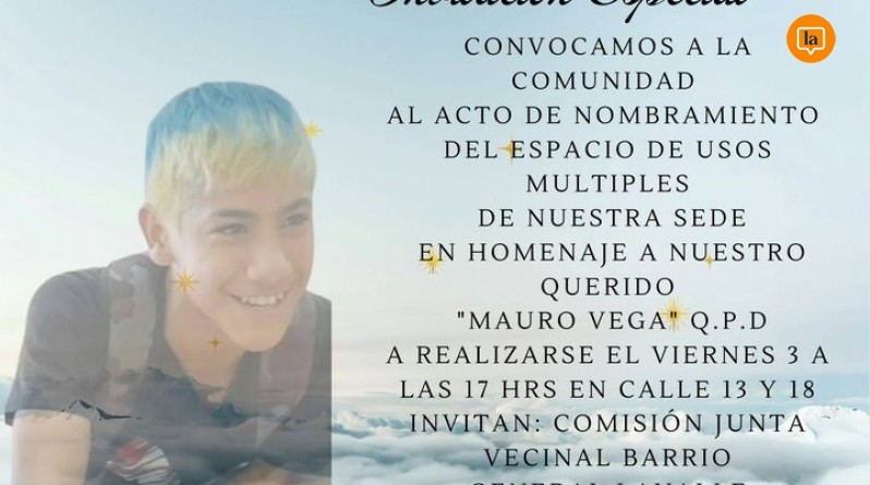 Las autoridades vecinales del barrio Lavalle realizarán un homenaje a Mauro Vega, el niño de 13 años de edad, vecino del sector, que perdió la vida el pasado 4 de enero, tras ahoga...