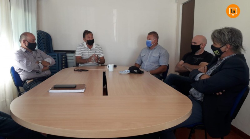 en su sede al flamante ministro de Trabajo de Río Negro Jorge Stopiello, con...